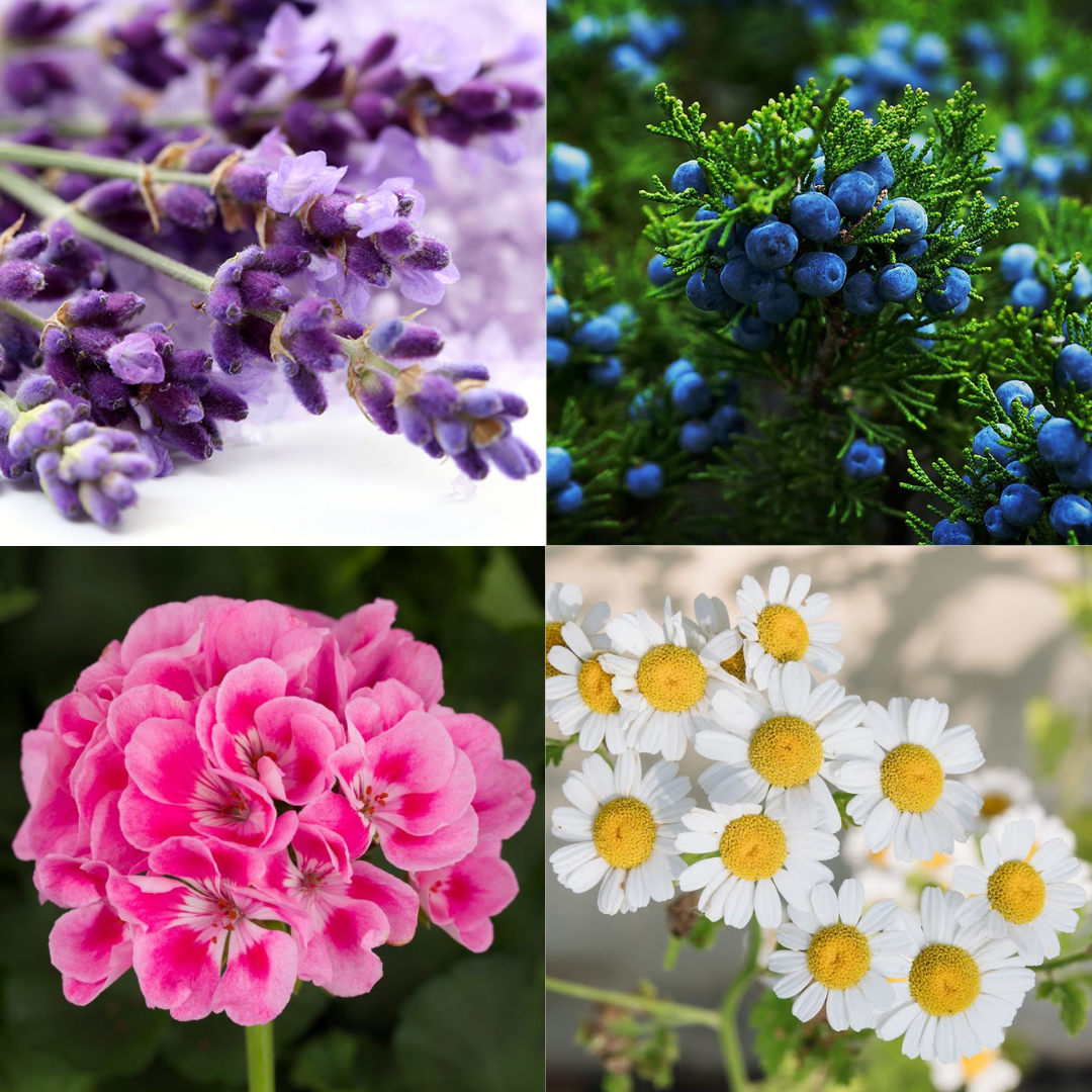 Aromatic blend of Lavender, Juniper, Geranium and Chamomile essential oils.